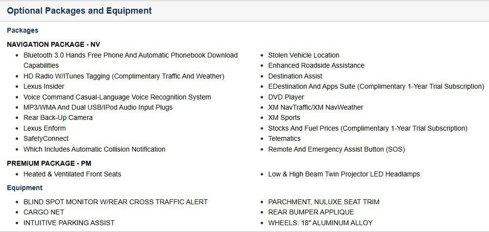 - Navigation Package with Lexus Enform and DVD Player