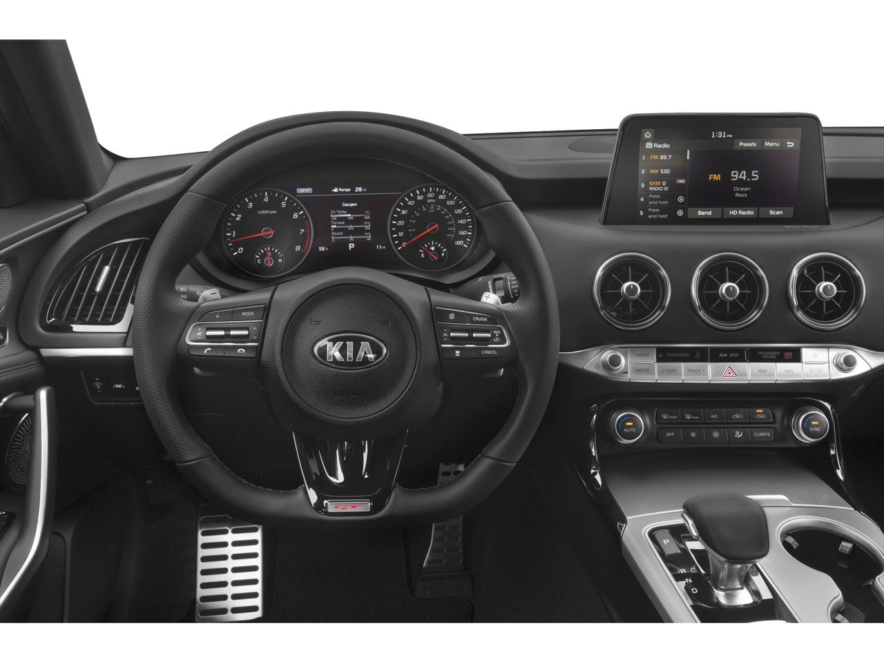 - Radio: AM/FM/MP3/HD/SiriusXM Audio System -inc: 7" color touch-screen display, 6 speakers, UVO eServices infotainment system, support for Android Auto and Apple CarPlay, USB input, Bluetooth® wireless connectivity, wireless phone charger and steering-wheel-mounted controls
