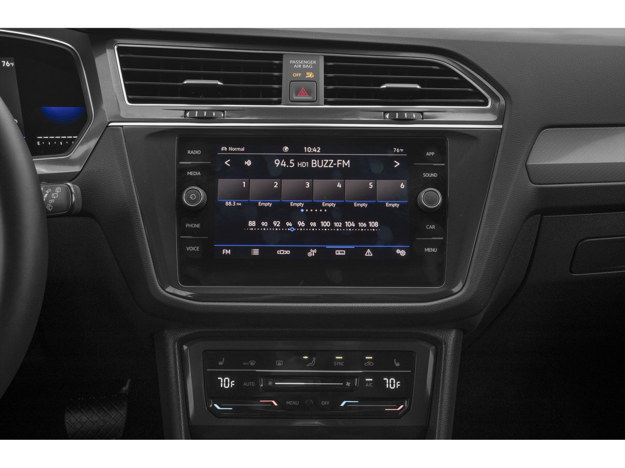 This Tiguan comes equipped with a host of premium features that cater to your every need. Enjoy the convenience of active cruise control, the comfort of heated front seats, and the versatility of 3rd-row seating. The perforated V-Tex leatherette upholstery and 18-inch dark graphite alloy wheels add a touch of sophistication to the already impressive package.